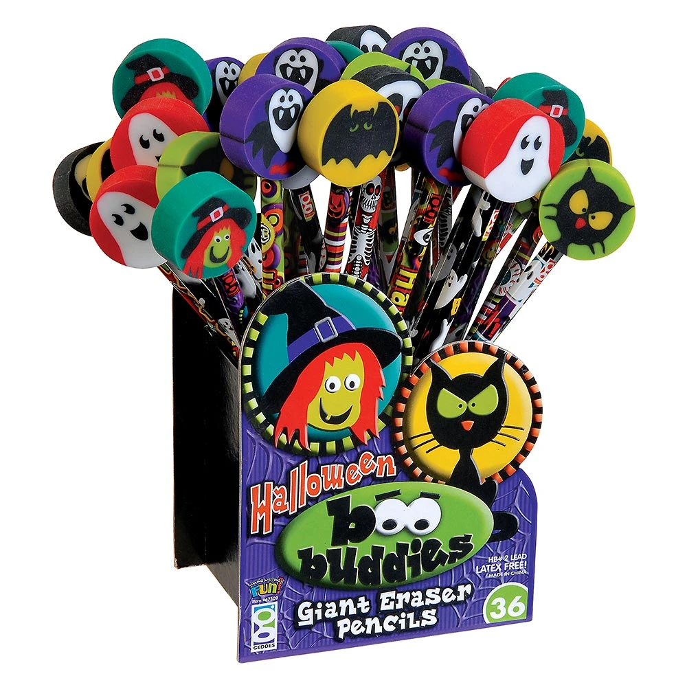 Boo! These Boo Buddies Pencils come with a giant eraser topper and are guaranteed to get you in the Halloween spirit. Ghosts, Skeletons, Vampires and more!