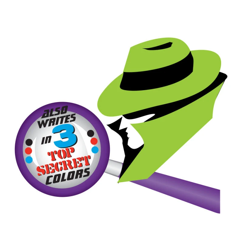 Our Confidential 3 color + Secret Decoder Spy Pen is a must-have for the super spy’s toolkit. These multi color pens let you change ink colors (red, black, blue and invisible ink) by pressing coordinating tabs on top. Write a message with invisible ink (the green tab) and use the ultra-violet light to reveal.