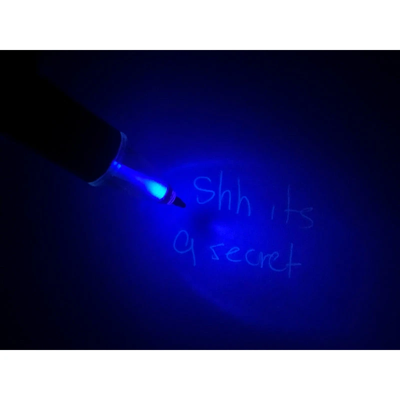This functional flashlight doubles as a secret decoder pen! Write secret messages with invisible UV ink and read with decoder UV light. Change from UV light reader to flashlight with flip of a switch.