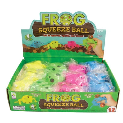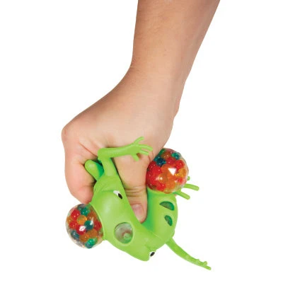 Melt away stress with these amiable amphibians! These frog shaped balls are fun to squeeze, squish, and throw! Each ball is filled with tiny colorful, squish-able orbs that pop out when squeezed.
