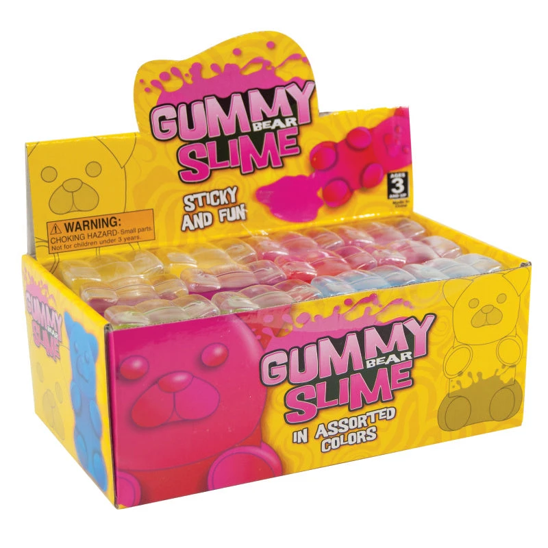 Who would have thought that slime could be adorable? Each cute gummy bear container is filled with ooey, gooey slime. Comes in six bright and vibrant colors.