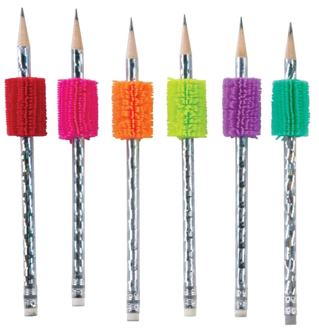 Our Kushy Squishy Grips are colorful and comfortable! These super squishy and soft pencil grips make writing a breeze and can help eliminate hand cramps and sore fingertips. They easily stretch over any pencil to add instant comfort.