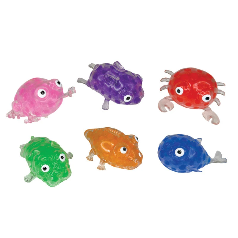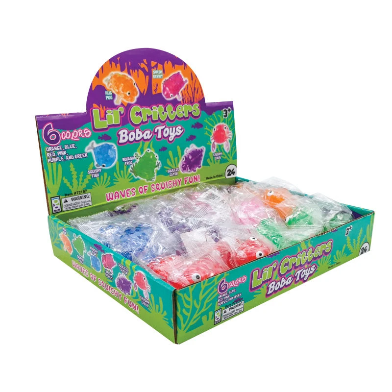 Waves of squishy fun in the palm of your hands. These cute Lil’ Critters are fun to squeeze and squish! 6 animals: Hug Pug, Squash Frog, Squishy Fish, Smash Rabbit, Squeeze Gator, and Crushy Crab come in 6 colors: orange, blue, red, pink, purple, and green. Approx 2.5” in size.