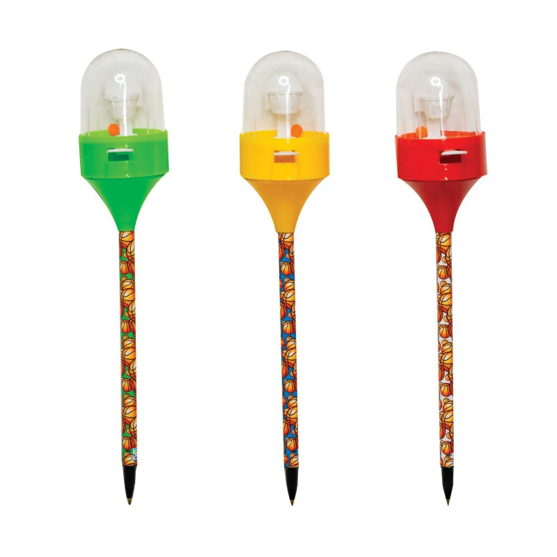 What’s all the HOOP-la about? Our new Shooting Hoops Pen of course! Practice writing and your hook shot! Colors: red, green, yellow toppers with basketball designs on each barrel.