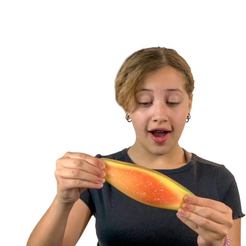 Now you can play with your food! Squishable, stretchable and oddly satisfying, this hamburger toy is so much fun to squeeze! Looks just like a mini hamburger. Great for stress relief.