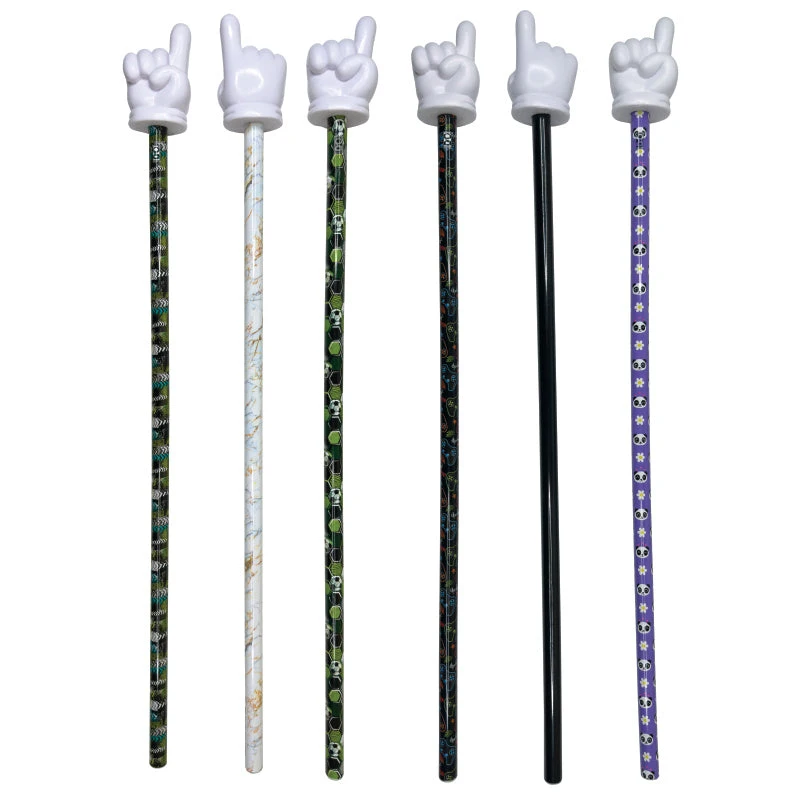 Encourage participation with these super sized pointers! Perfect for home and classroom use. 8 different patterns including: marbleized swirl, tire tracks, avocado, soccer, cotton candy swirl, gamer, black, and panda/flower. 3 assorted designs per bag. 24” long.