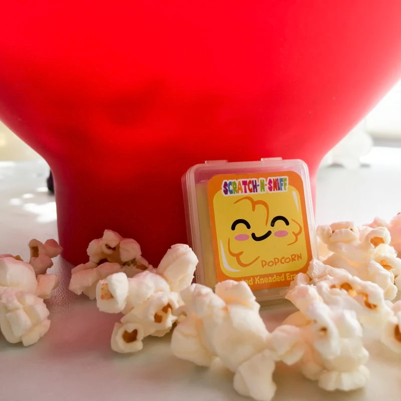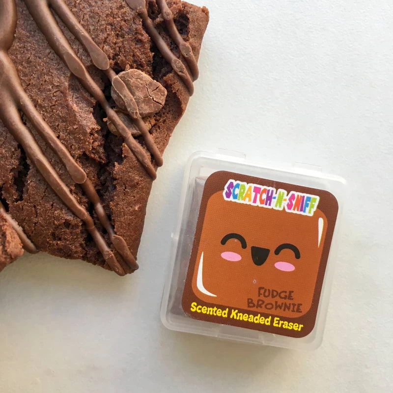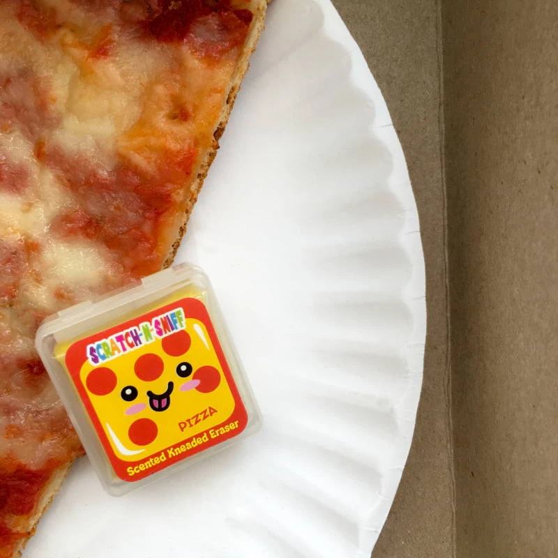 - Each eraser is packaged in its own case to lock in scent and features a scratch-n-sniff sticker!