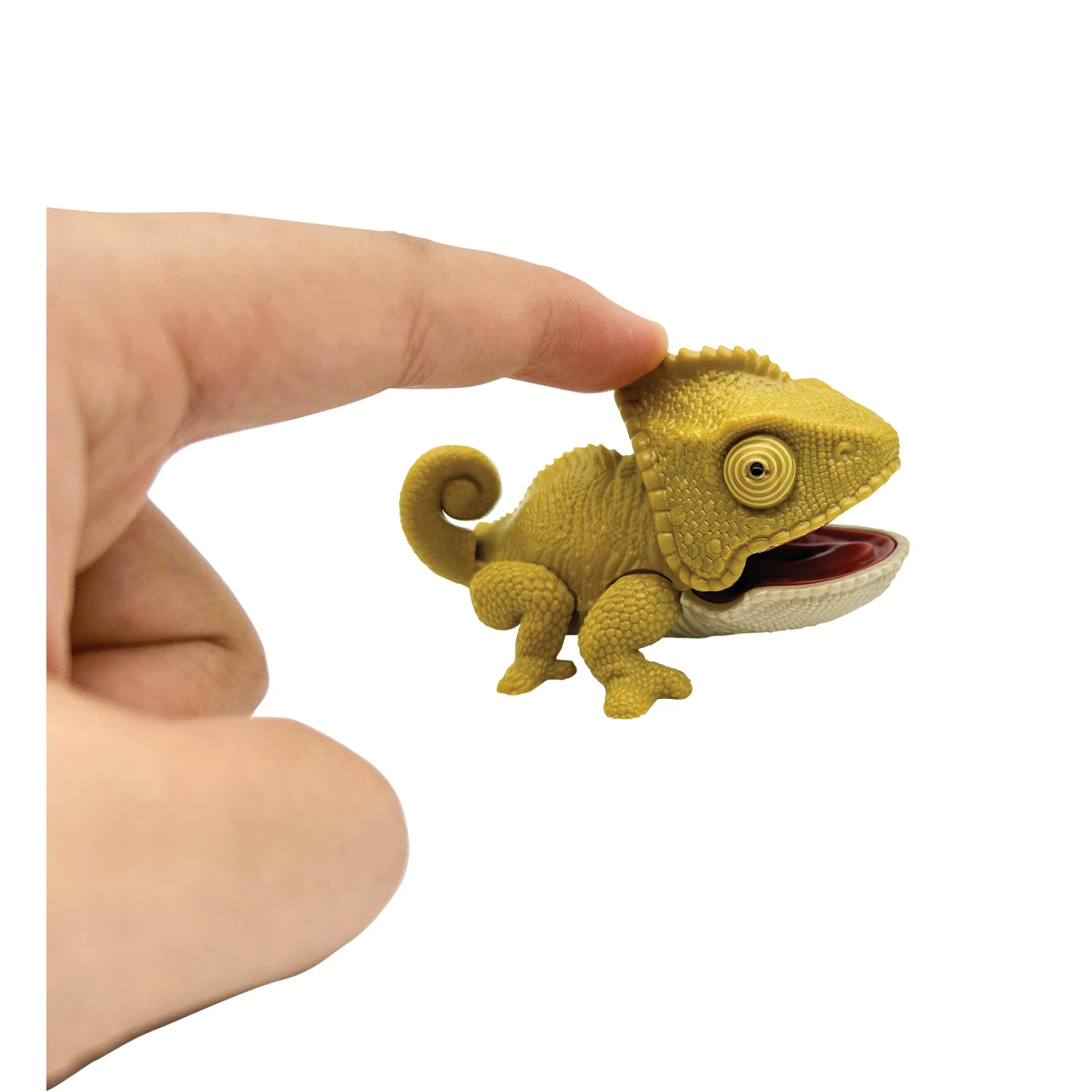 Chompy, chompy! Realistic toy animals with biting action! Grabs on to your fingers! Some designs grab on to pencils, paper, and more. 8 animals to collect: shark, chameleon, bulldog, lion, hippo, rhino, elephant, and alligator. Each animal comes in 2 color variants. Press down on head to make mouth open and close. Makes a great party favor, reward incentive, and desk pet!