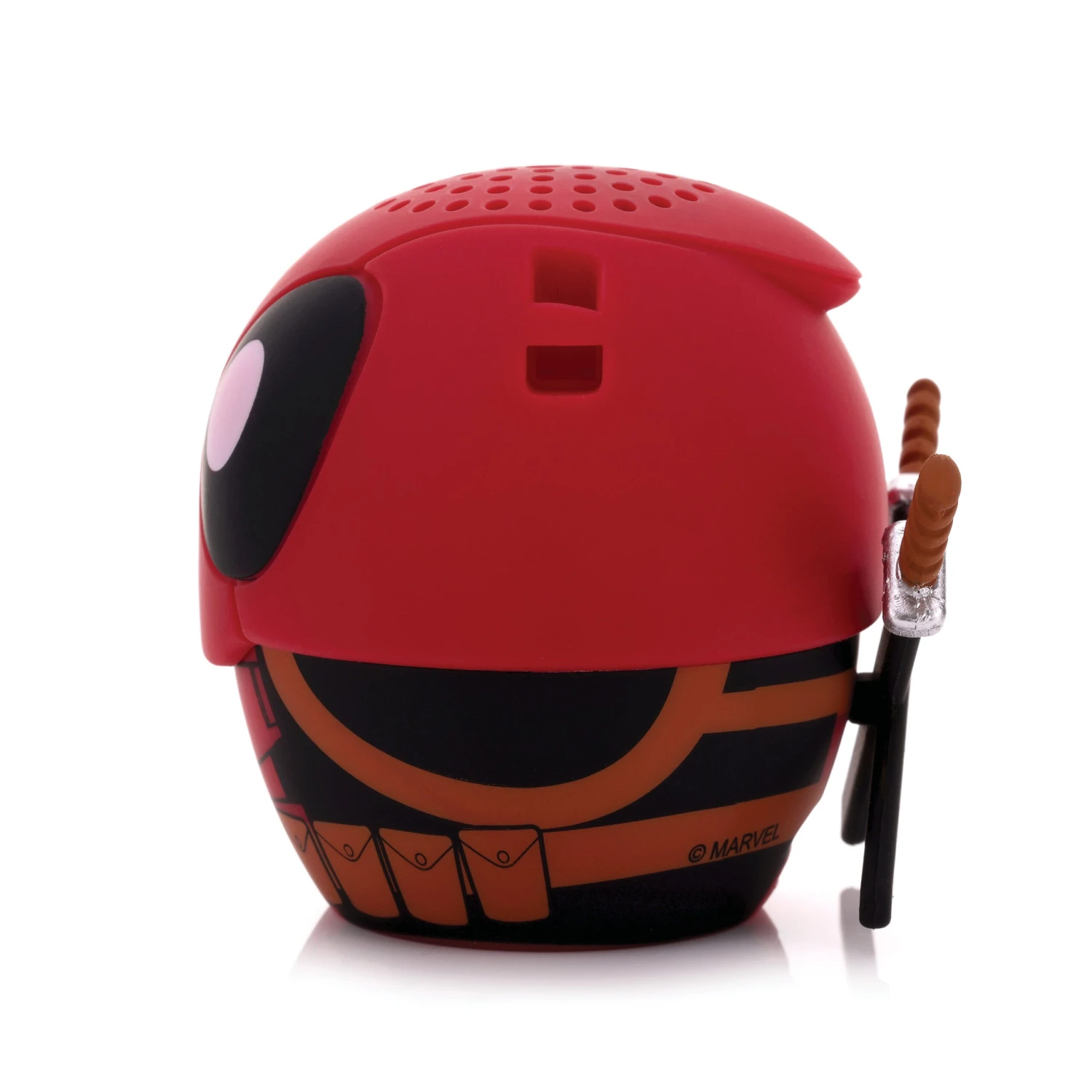 Marvel’s Deadpool now in a 2″ tall Bitty Boomer. Bitty Boomers are wireless Bluetooth speakers that are ultra-portable. Imagine a collectible with a purpose. Tiny size. Huge sound.