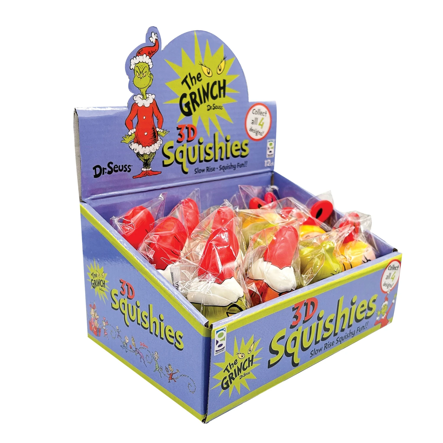 EXCLUSIVE! Squeeze your holiday stress away with these adorably mischievous Dr. Seuss™ The Grinch Slow Rise Toys! Choose from The Grinch (with or without Santa’s hat) or Cindy Lou Who and Max, each cuter than the next. Beat the last-minute holiday stress with these fun and squishy, slow-release delights!
