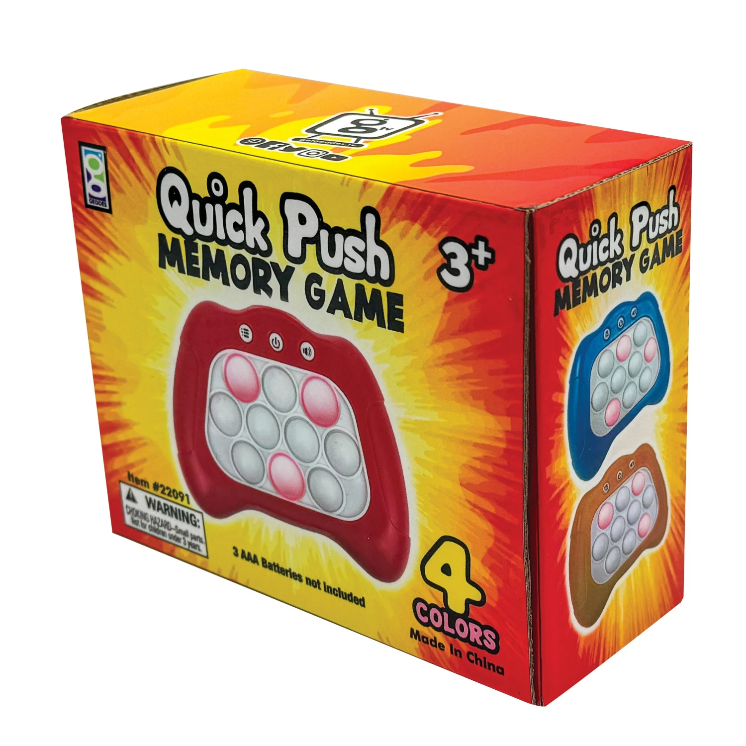 The fun never stops with this mini handheld game! 4 playing modes: Mission Mode, Memory Mode, Scoring Mode, and Multi-player Mode. 4 colors: red, blue, green, and orange. Requires 3 AAA batteries; not included. Ages 3+. Instructions included.